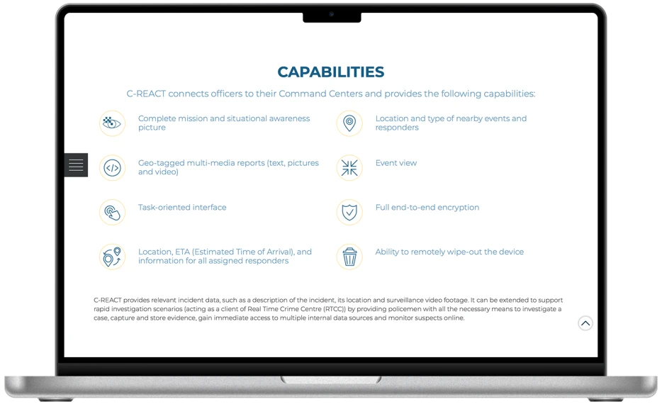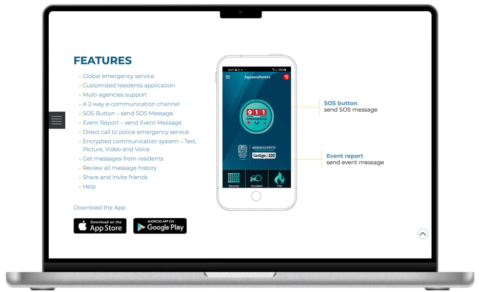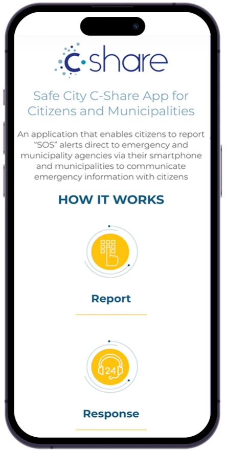 An application allowing citizens to send emergency “SOS” alerts directly to municipal and emergency services, featuring: