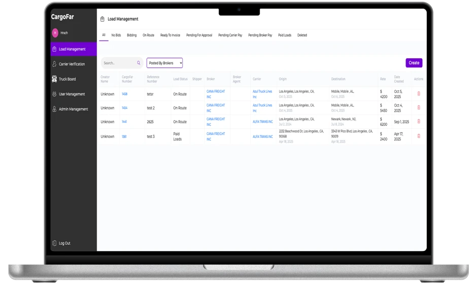 - Separate yet connected interfaces: a mobile app for carriers and managers, and an admin panel for brokers and administrators